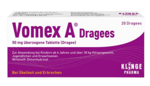 ➤ Tabletten (von Vomex A®)* gegen Übelkeit und Erbrechen.